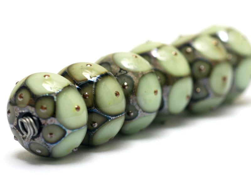 10504921 - Six Moss Green w/Metal Dots Rondelle Beads