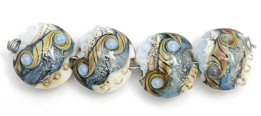 10411012 - Four Sweet Blue Stardust Lentil Beads