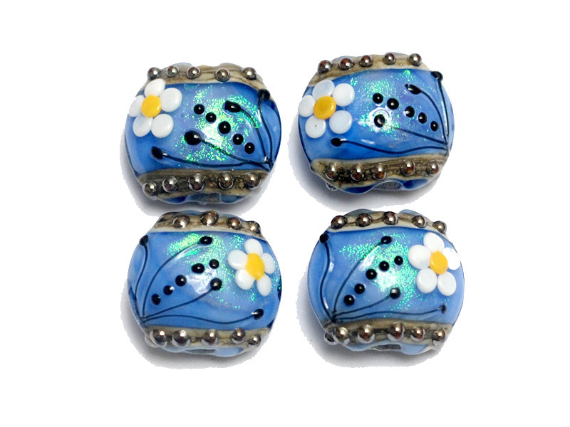 10414212 - Four Arctic Blue Florals Lentil Beads