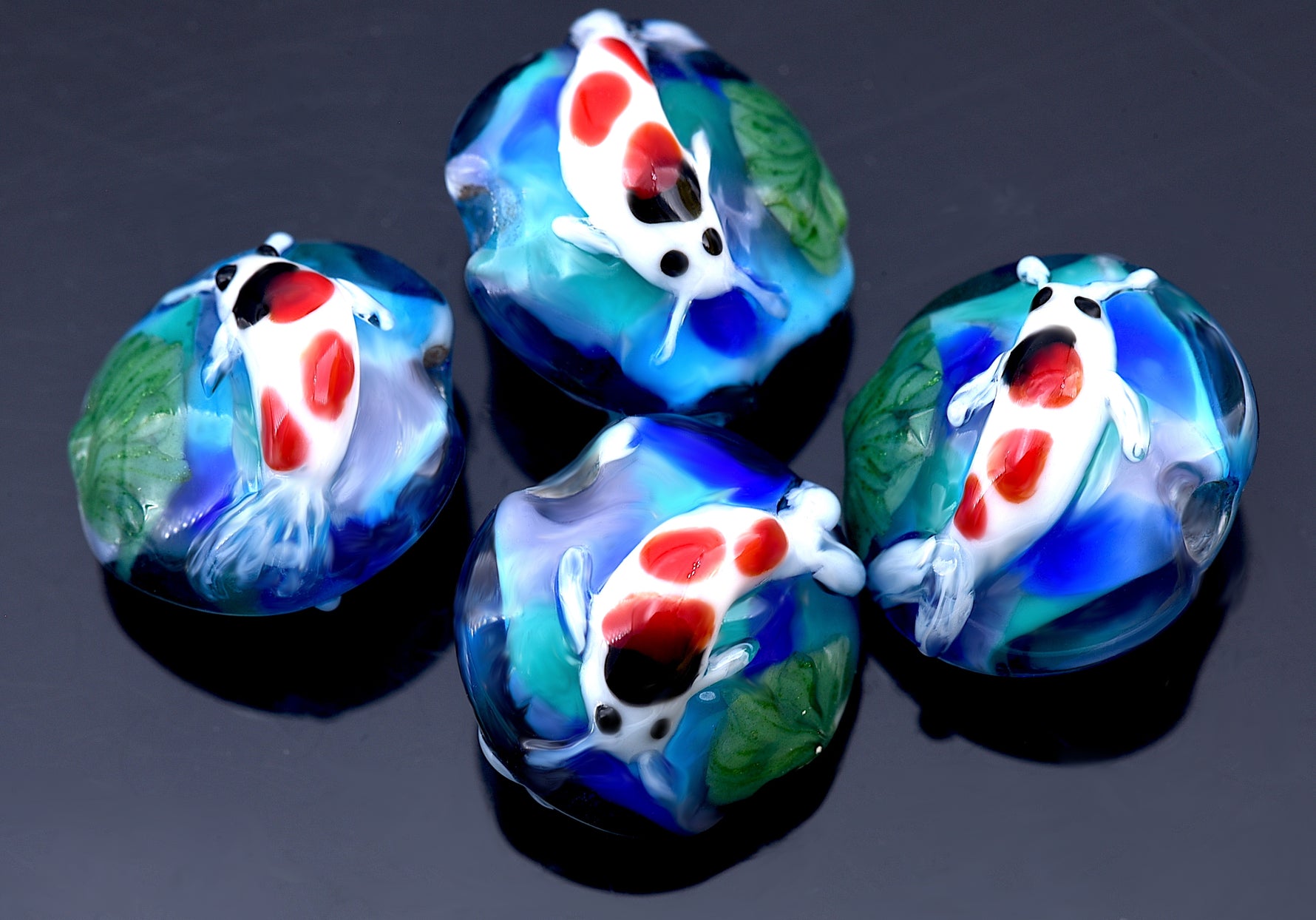 10415612 – Four Koi Fish Japanese Pond Lentil Beads