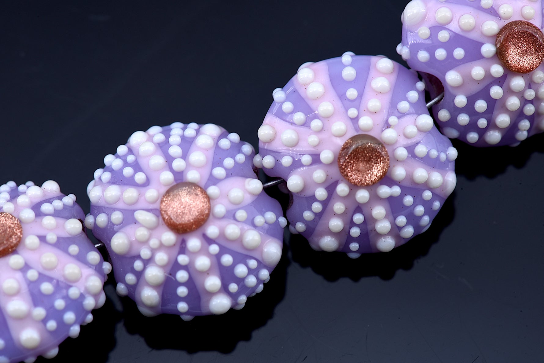 10605812 - Four Purple Sea Urchin Lentil Beads