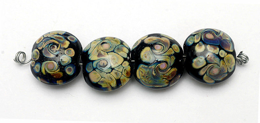 11200812 - Four Black w/Twisted Beige Dots Lentil Beads