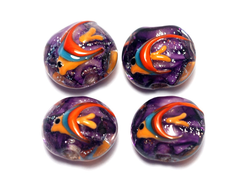 Freestyle fish design on an translucent bead with silver dicroic. Same design on both sides.