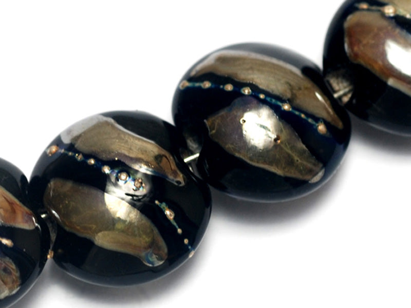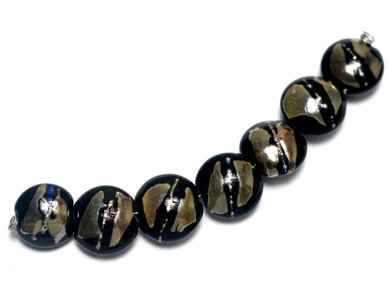 10204102 - Seven Elegant Black Metallic Lentil Beads
