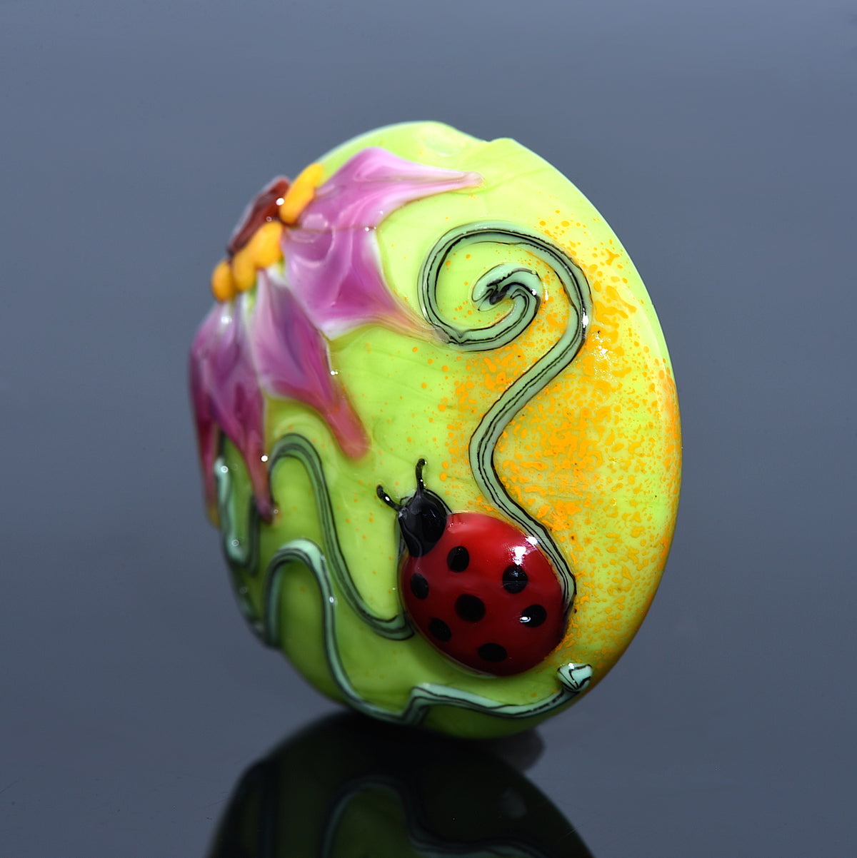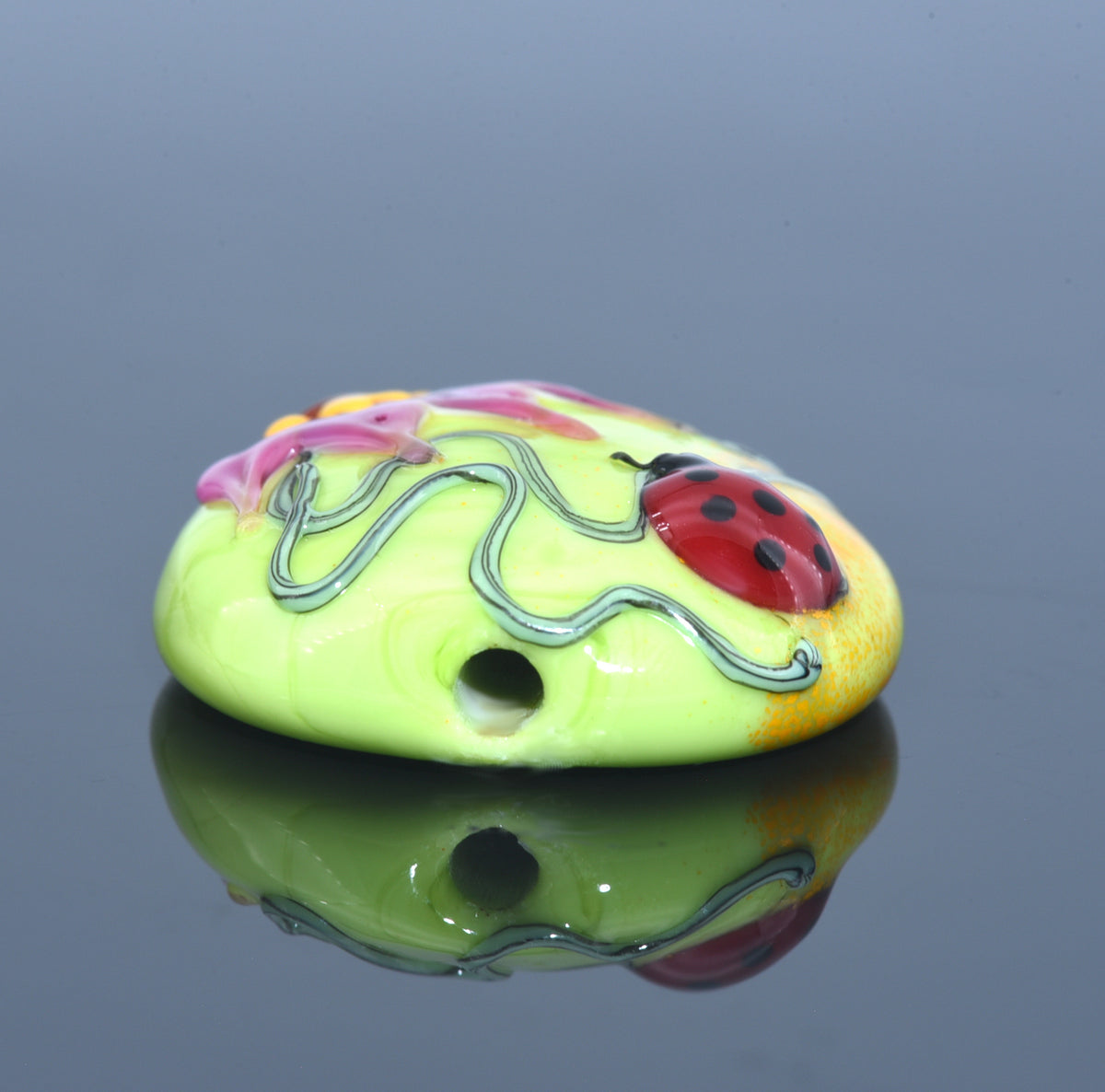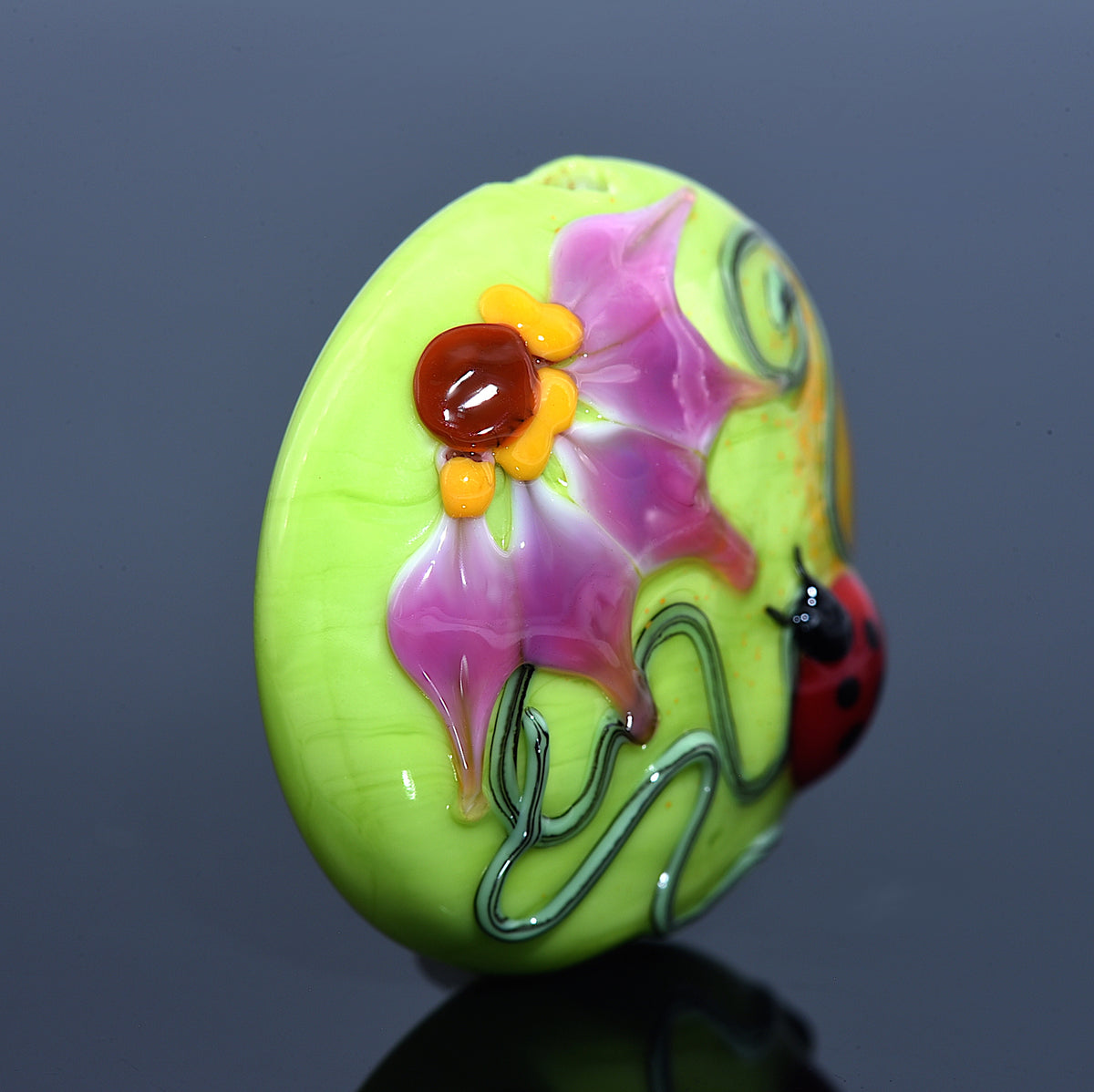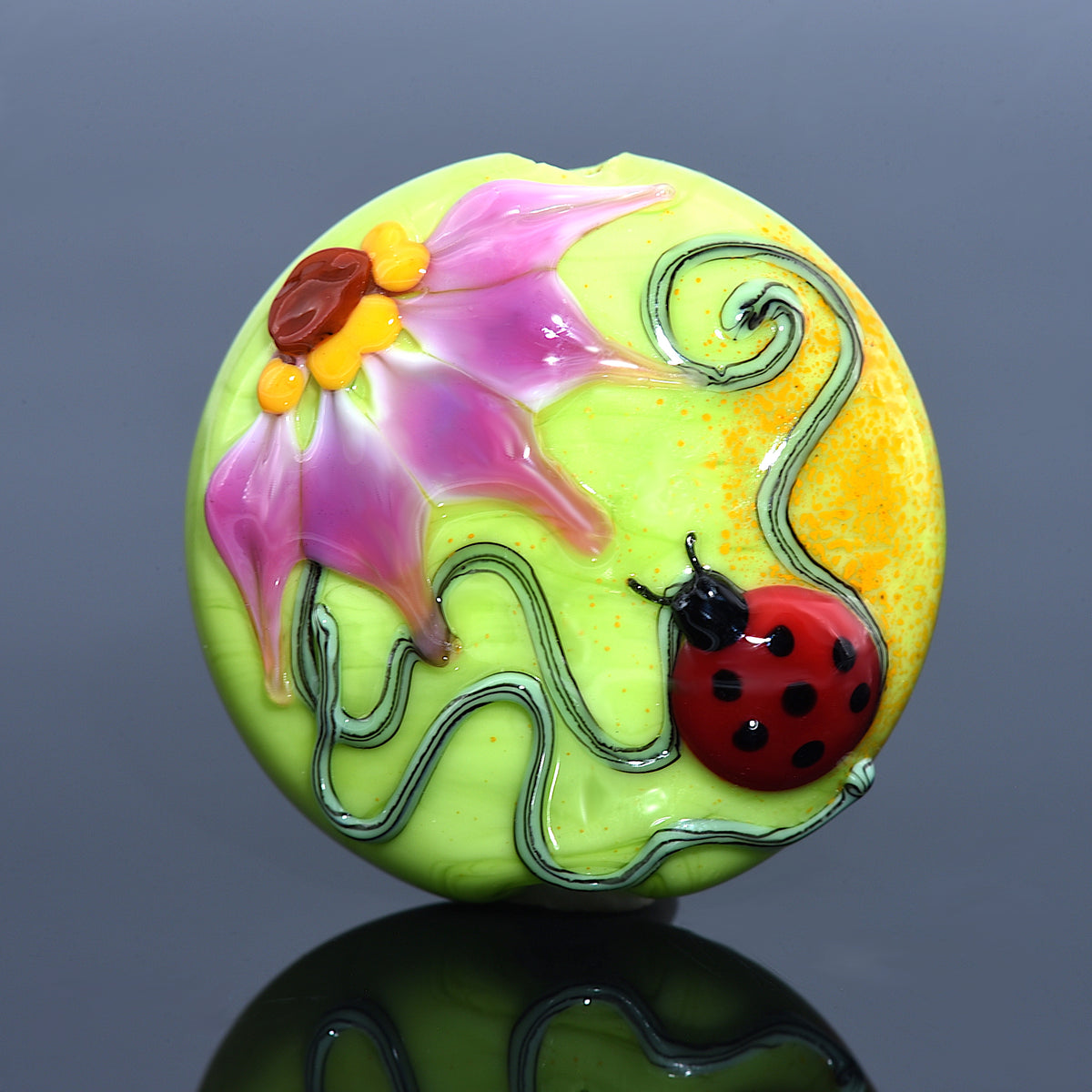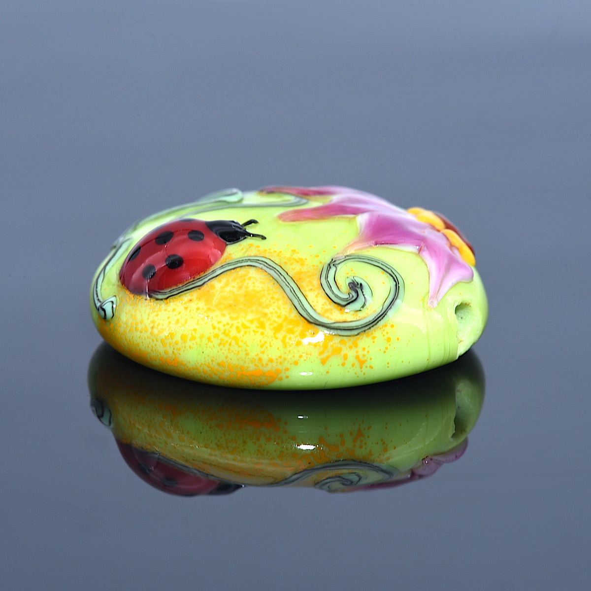 11833102 - Ladybug on Spring Green Lentil Focal Bead