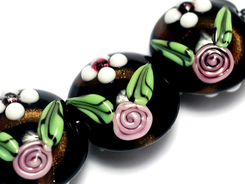 11105012 - Four Black/Ivory & Beige Lentil Beads