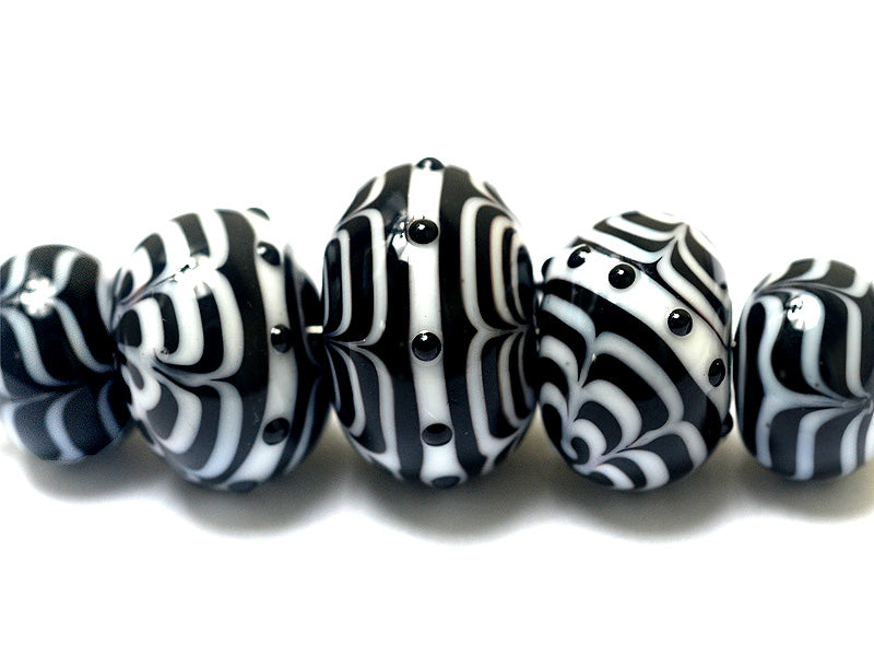 11200803 - Six Black w/Twisted Beige Dots Mini Kalera Beads