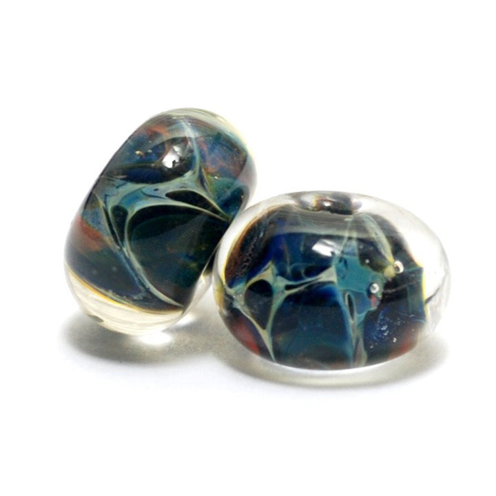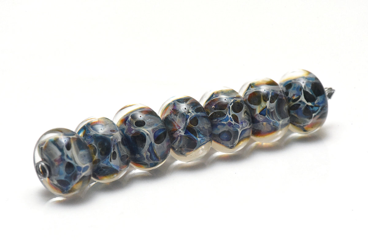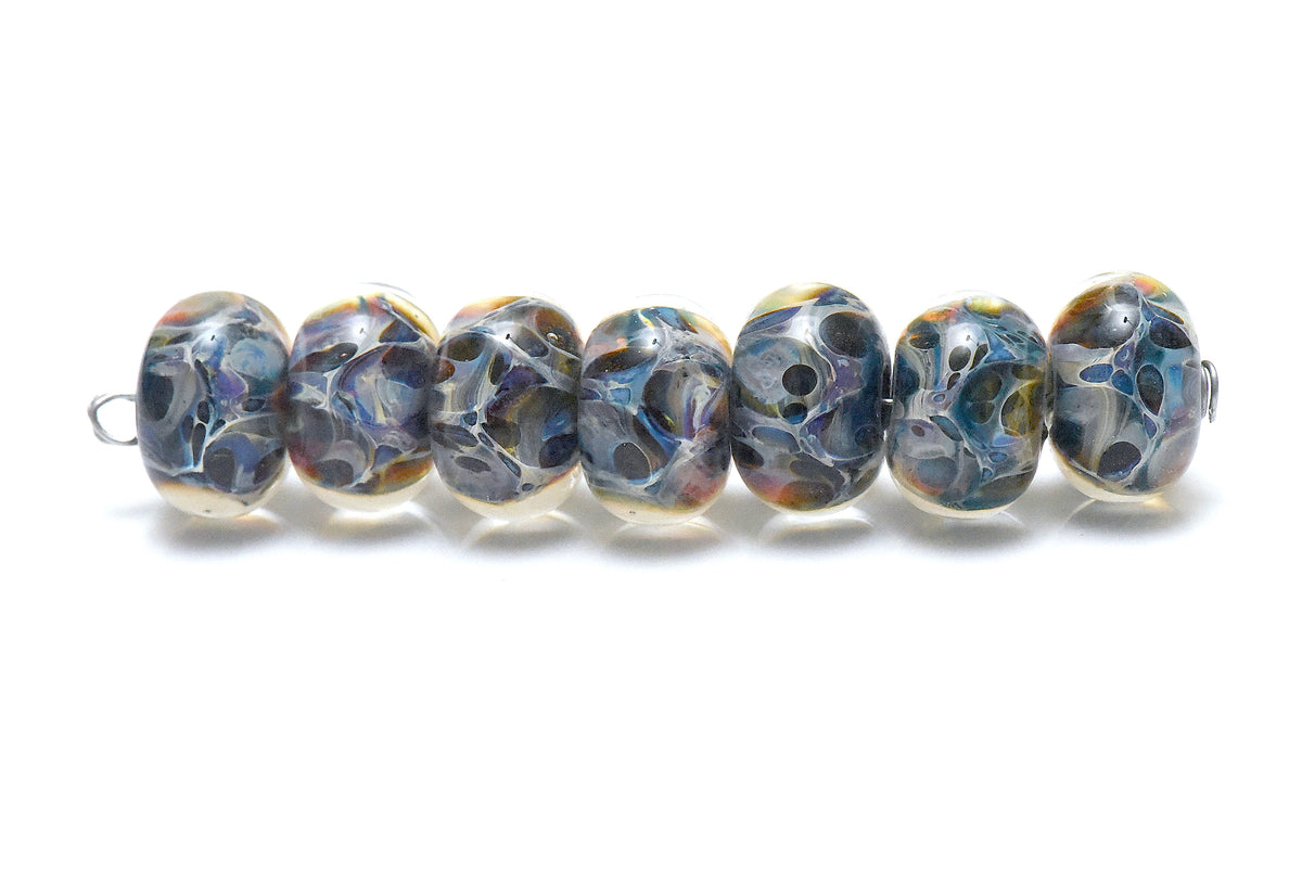 10409501 - Seven Blue/Multi-colors Boro Rondelle Beads