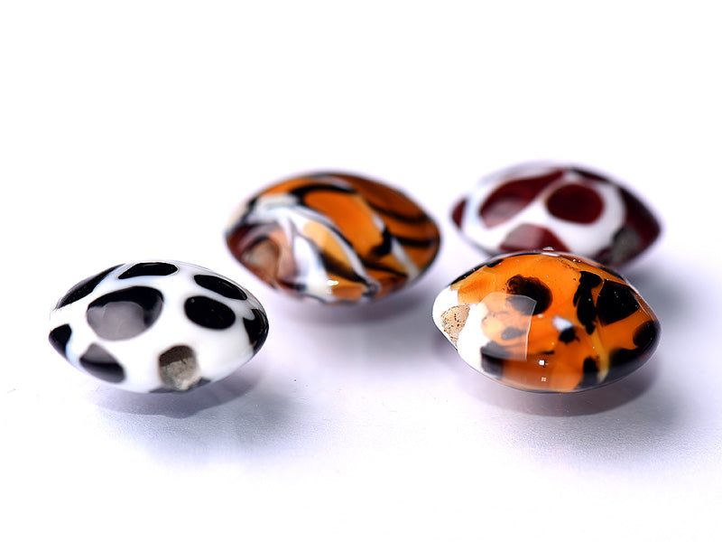 Bring a touch of the wild to your jewelry designs with these handmade animal-print lentil beads. This 4-bead set features striking tiger-inspired patterns, each bead showcasing the same design on both sides for a coordinated, bold look. Perfect for creating statement pieces or mixing with other beads for playful, exotic styles.