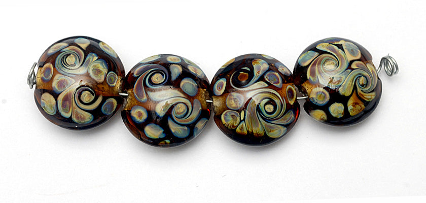 11102612 - Four Brown w/Twisted Beige Dot Lentil Beads