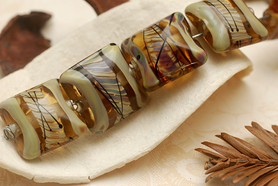 11106114 - Four Transparent Brown w/Beige Strips Pillow Beads