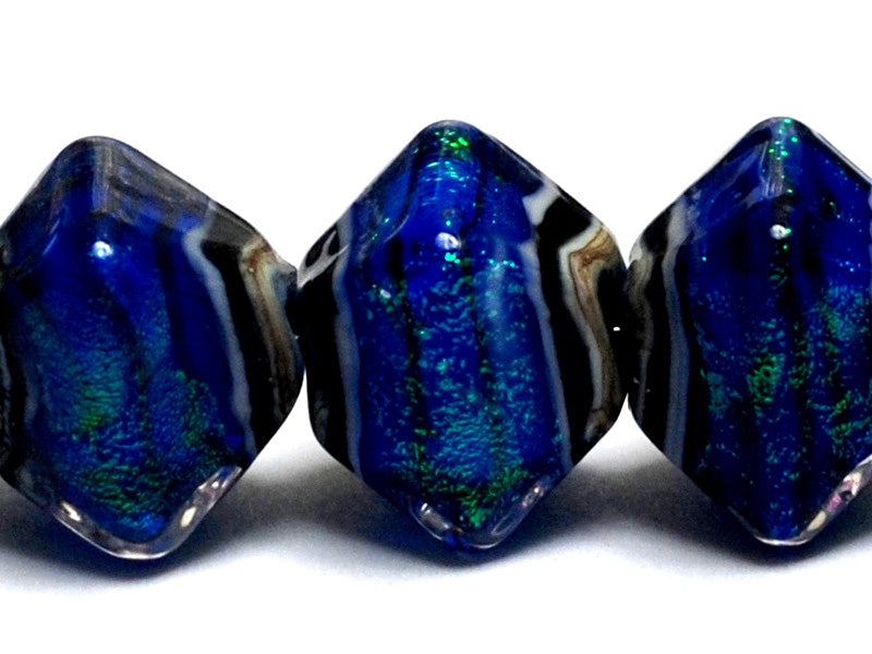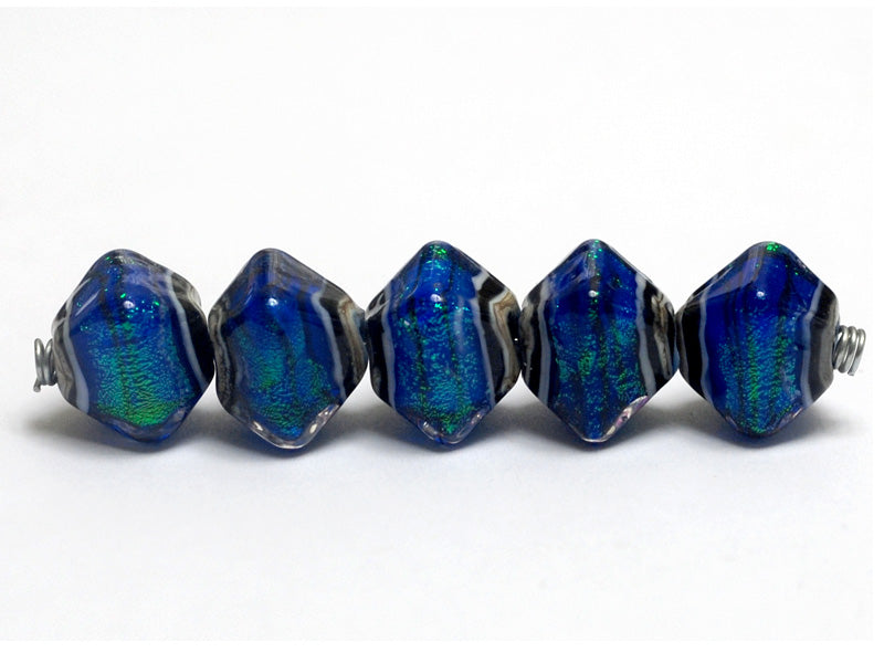 These crystal-shaped beads feature a frosty blue base with sparkling dichroic accents, creating a shimmering Arctic Blue effect. Perfect for adding a touch of icy elegance to your jewelry designs.