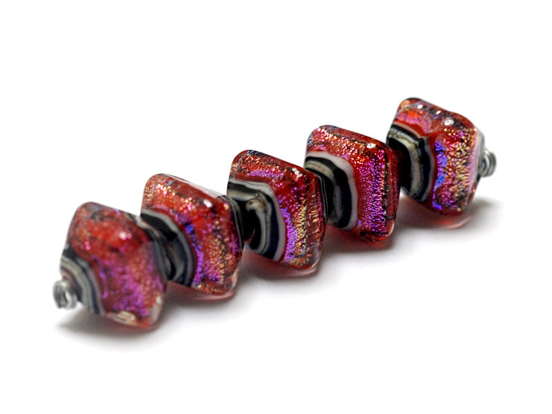 These Passion Pink Shimmer Crystal Beads feature pink dichroic glass with a sparkling, freestyle design. Perfect for adding a touch of shimmer and elegance to your jewelry creations.