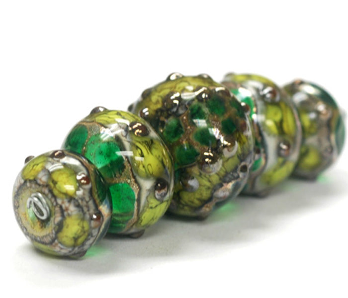 10503911 D - Five Graduated Dark Green w/Silver Foil Beads