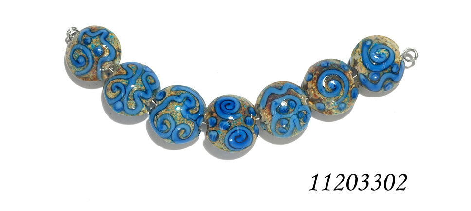 11203302 D - Seven Ivory w/Blue Swirl Lentil Beads
