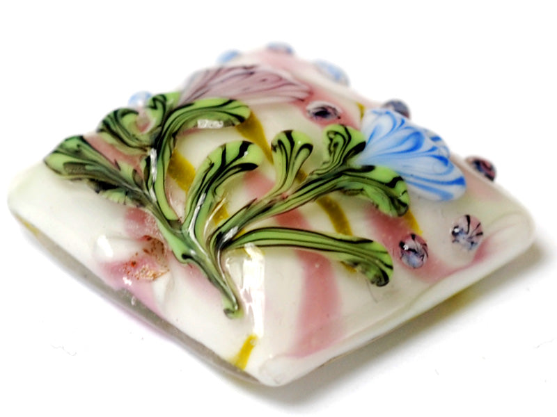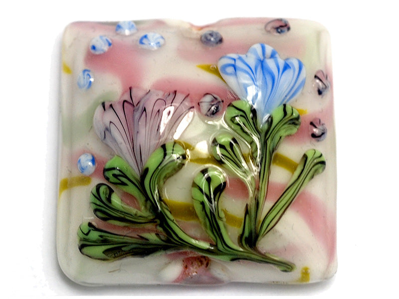11805104 D - Light Pink w/Blue Floral Pillow Focal Bead