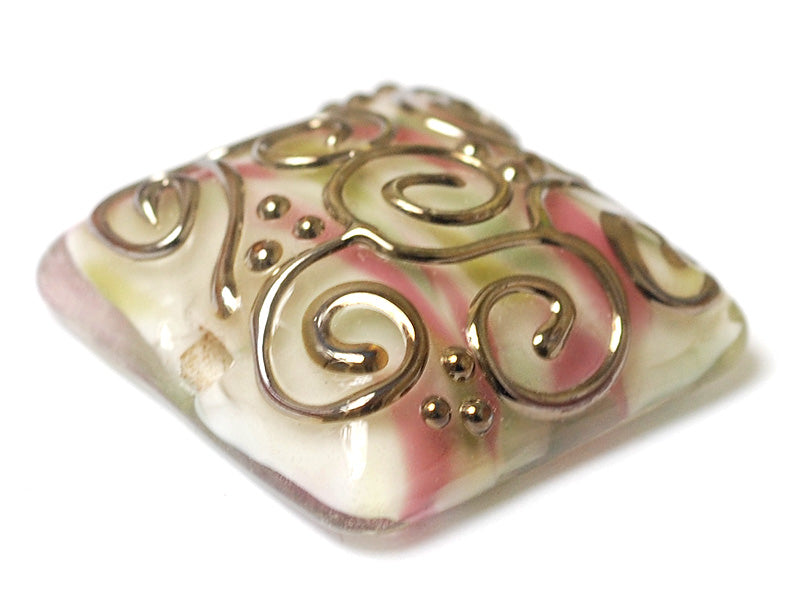 11812804 D - Light Pink w/Metal Stringer Pillow Focal Bead