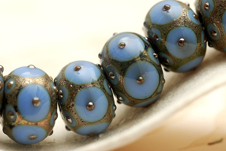 10409001 - Seven Teal Blue w/Metal Dots Rondelle Beads