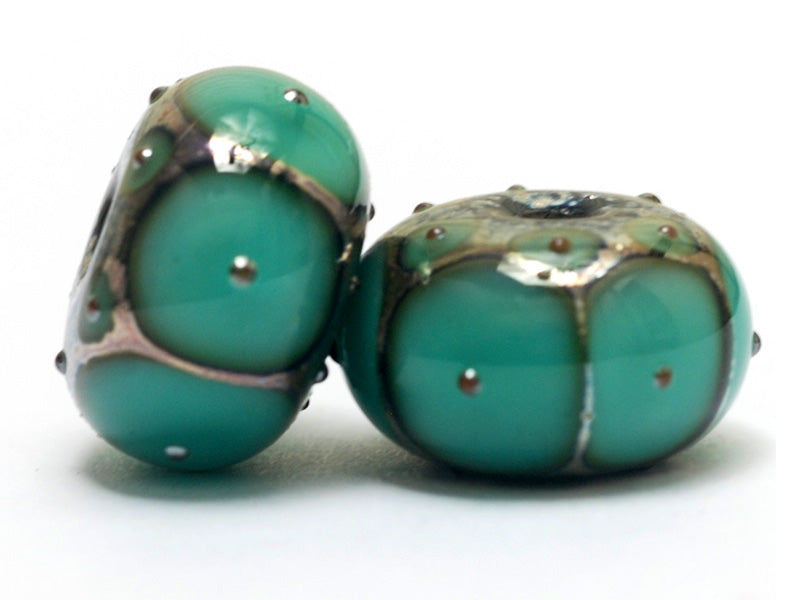 10505121 - Six Ocean Green w/Metal Dots Rondelle Beads
