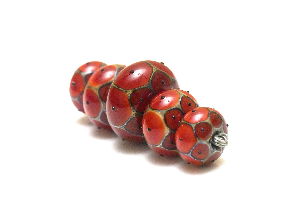 10703901 - Five Graduated Red w/Black Dots Rondelle Beads