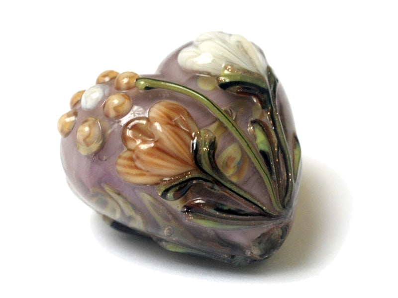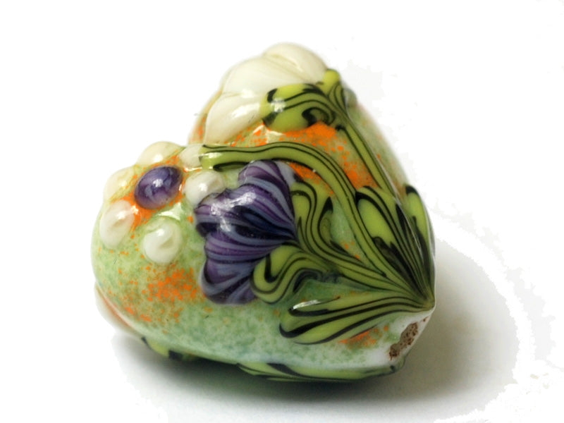 Bring a touch of nature-inspired beauty to your jewelry designs with these handmade lampwork rondelle beads. Each bead features delicate raised details of flowers, vines, and dots, adding rich texture and artistry.