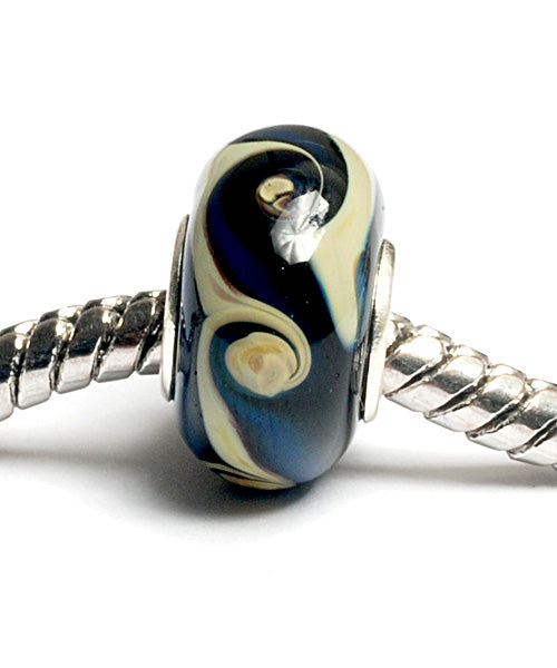 SC10016 - Large Hole Ivory/Black/Blue Free Style Rondelle Bead