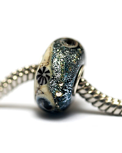 Enhance your jewelry designs with this handmade sable celestial rondelle bead. Featuring the same intricate celestial design all around, this bead is ideal for bracelets, necklaces, and artisan jewelry projects.