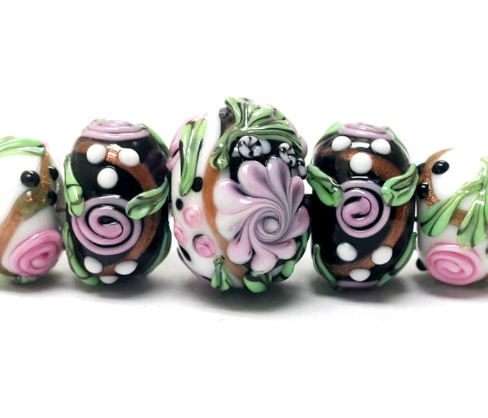 Bring energy and celebration to your designs with this strand of handmade lampwork rondelle beads. Featuring a bold black base adorned with vibrant fiesta-inspired colors, these beads radiate fun and joy. The graduated sizes add a dynamic flow, perfect for creating striking centerpieces or balanced jewelry sets.