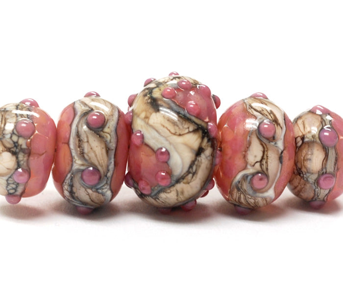 10704311 - Five Graduated Pink Desert Rondelle Beads