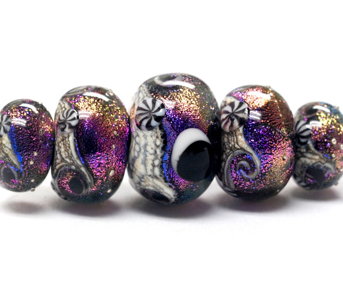 10204811 – Five Graduated Sable Celestial Rondelle Beads