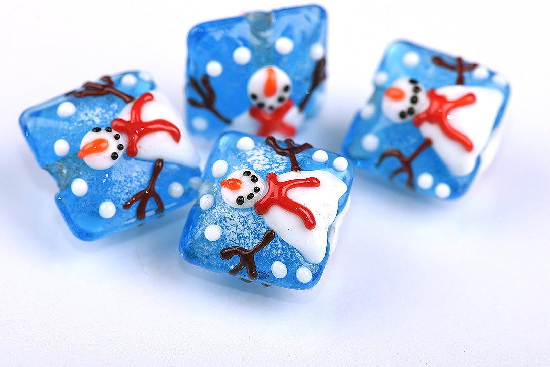 Each bead is individually handmade, so slight variations in size and shape emphasize their artisanal nature. For detailed sizing information, please see our Product Measurements page.10414914 – Four Juggling Snowman Pillow Beads
