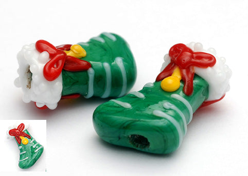 Glass Lampwork Beads Handmade in CaliforniaStocking Focal BeadSize: 17mm x 11mm