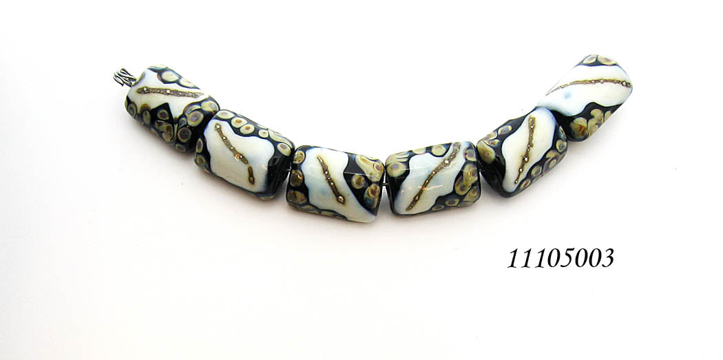 11200803 - Six Black w/Twisted Beige Dots Mini Kalera Beads