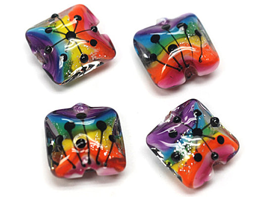 Freestyle rainbow colors encased in a clear bead. Same design on both sides.