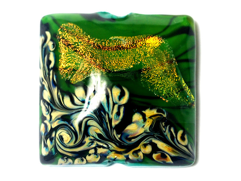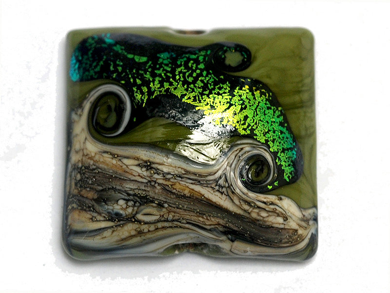 11834204 - Olivine Pillow Focal BeadFreestyle design of waves with yellow and green dichroic.