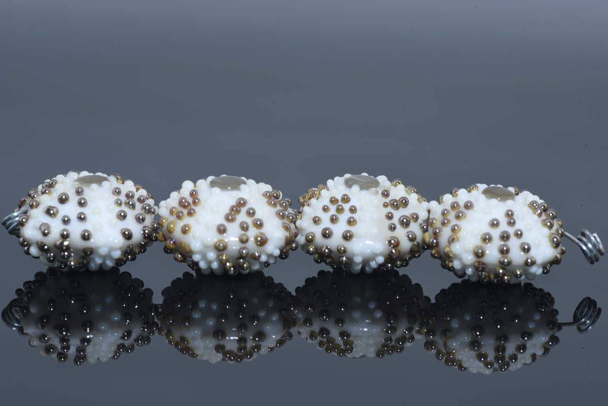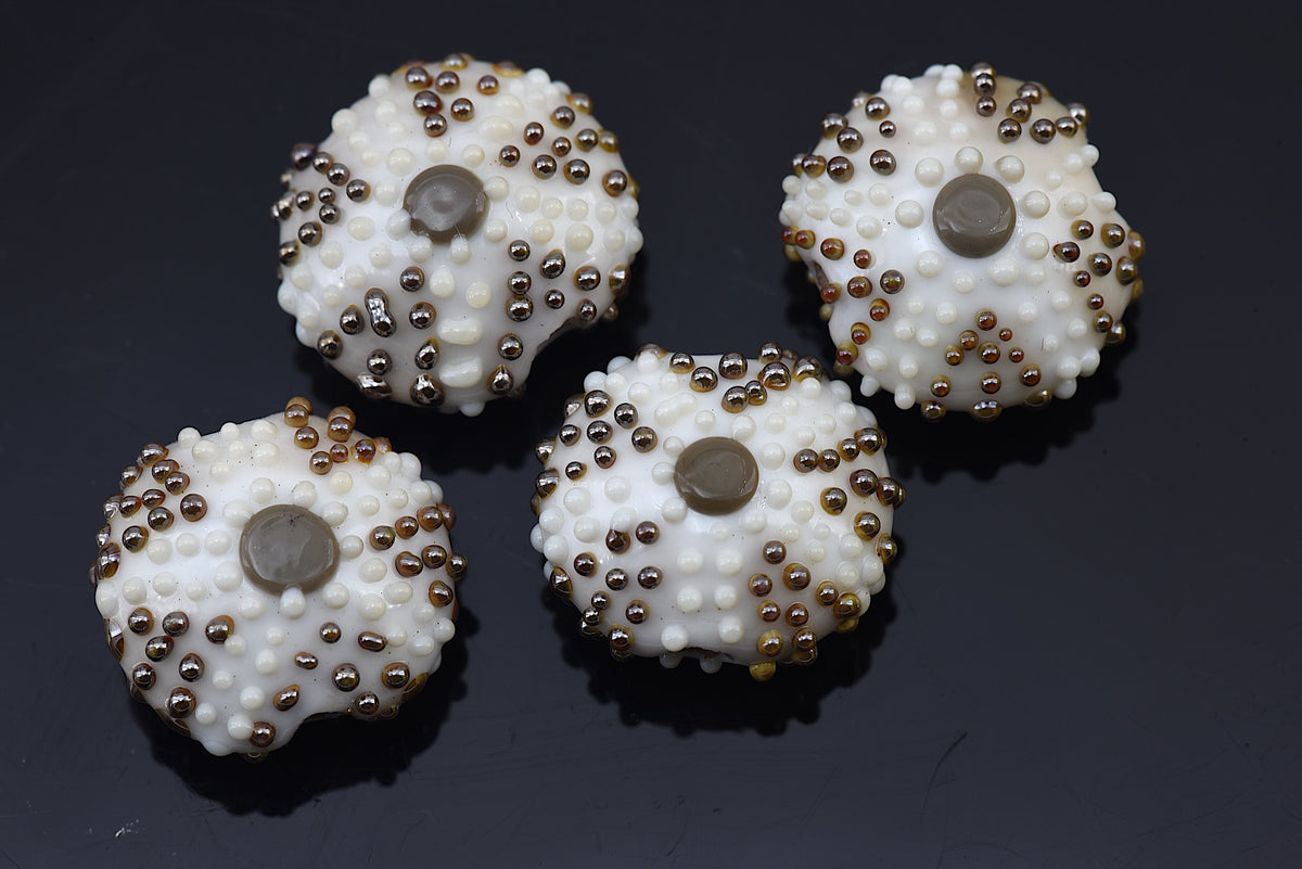10306612 - Four Ivory Sea Urchin Lentil Beads