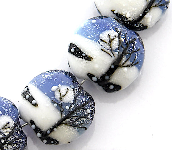A set of four Snow Night lentil beads, featuring the same design on both sides.