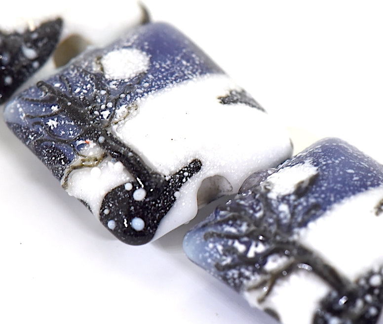 A set of four Snow Night lentil beads, featuring the same design on both sides.