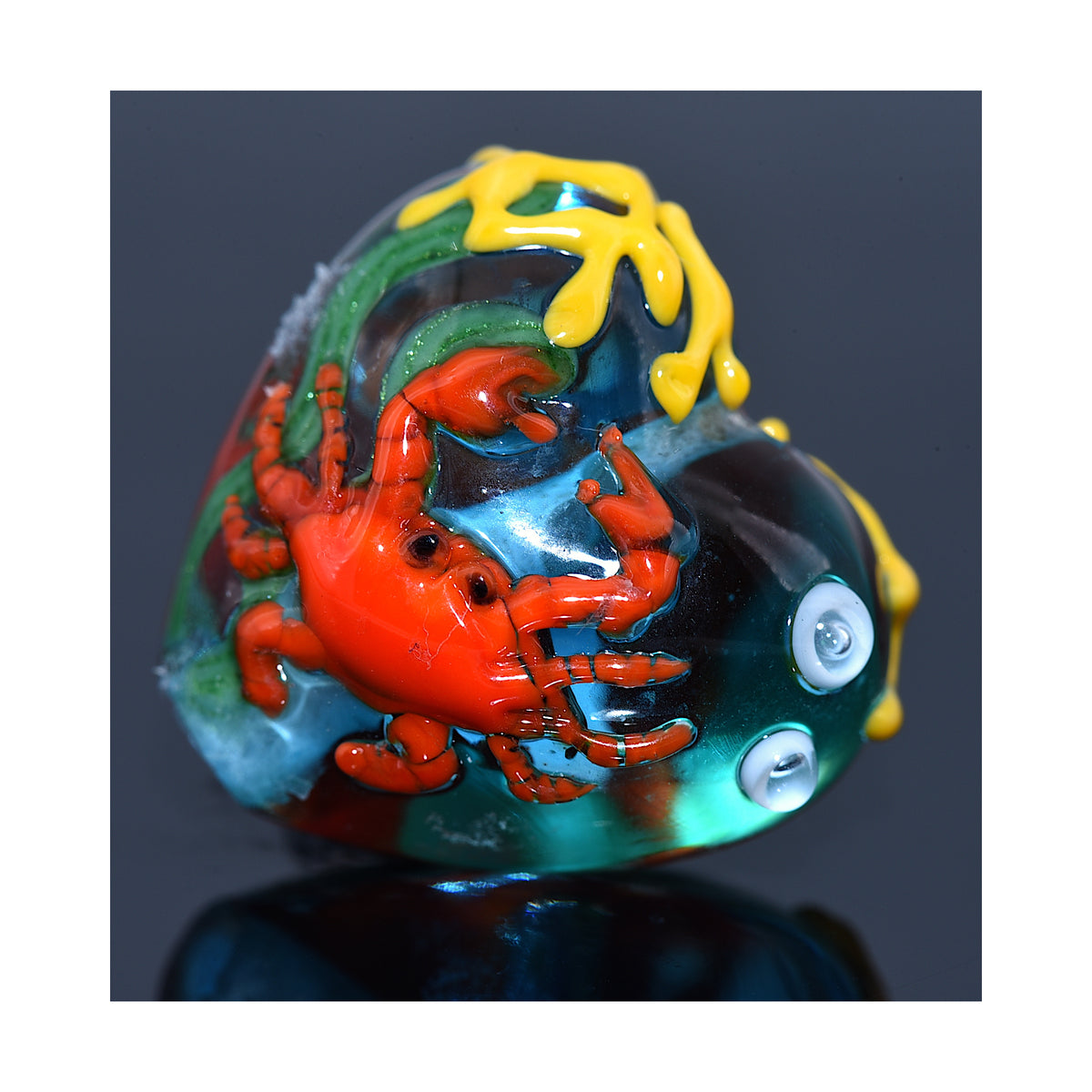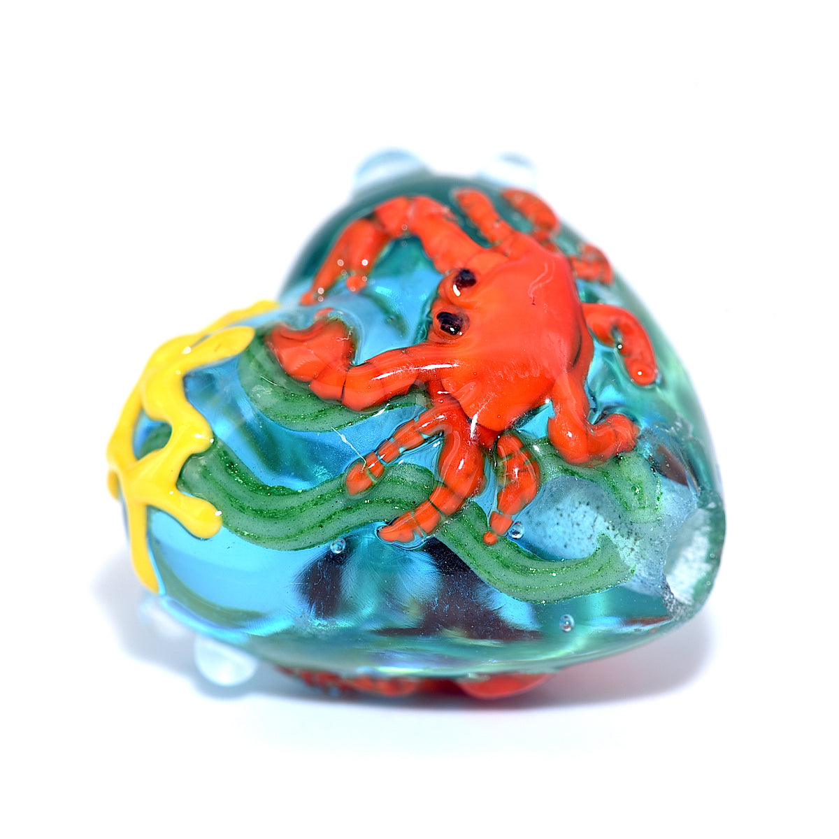 This charming heart bead features a red crab design on both sides, making it a playful focal piece for ocean-inspired jewelry.