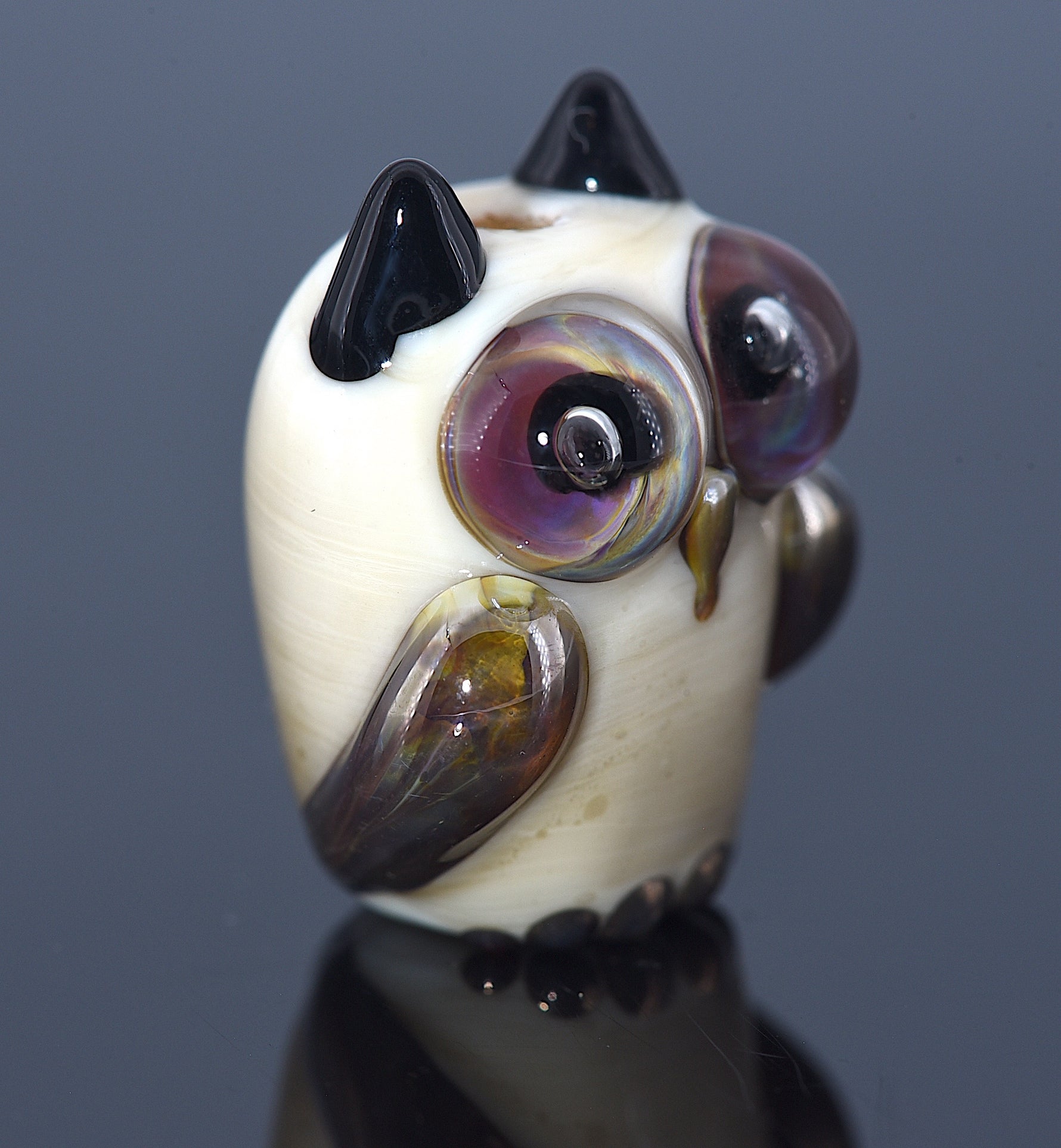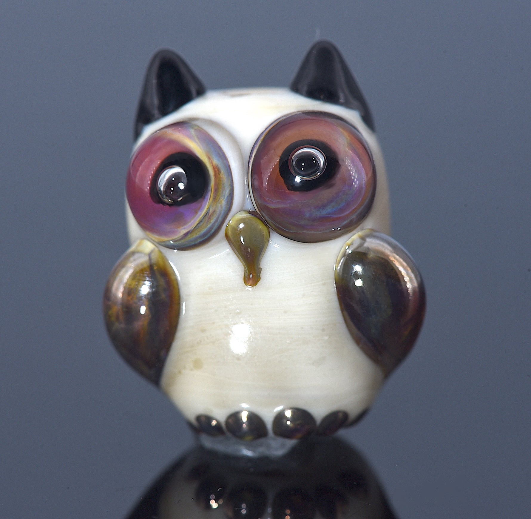 OWL-M-05 - Ivory Owl Bead with Brown Eyes, size M