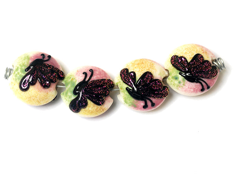 11008412 - Four Pink Sparkle Garden Butterfly Lentil Beads