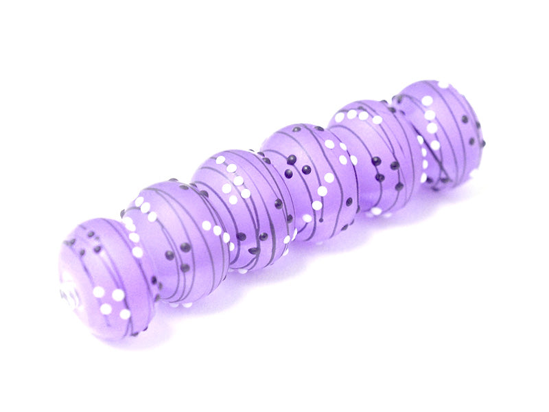 Little black and white dots on lilac frosted glass bead. Same design all around.