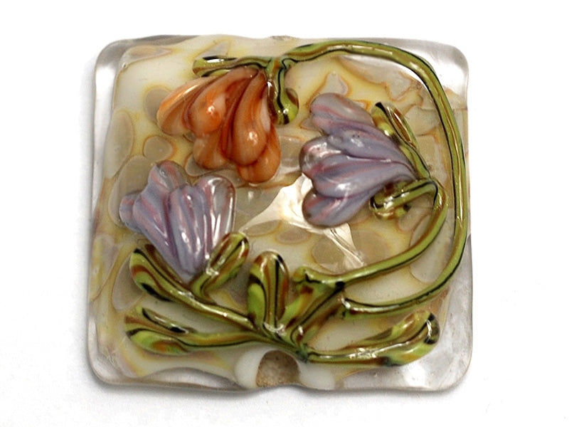 Venetian & Murano Glass Beads Handmade in California11005804 - Seven Purple w/Orange Flora Pillow Beads