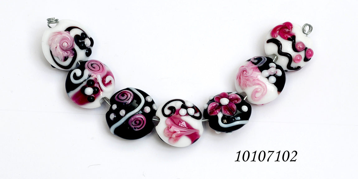 10107102 D - Seven Black & White w/Pink Lentil Beads