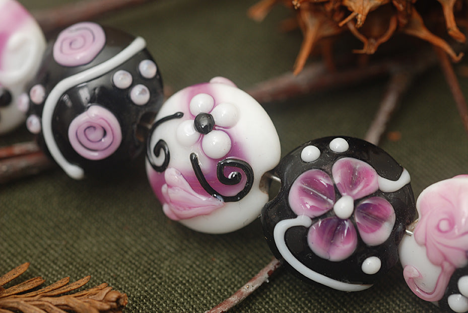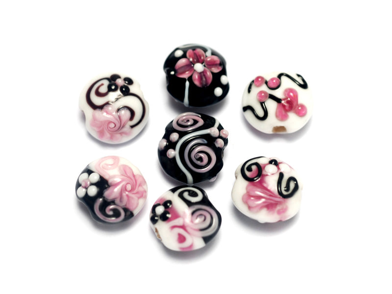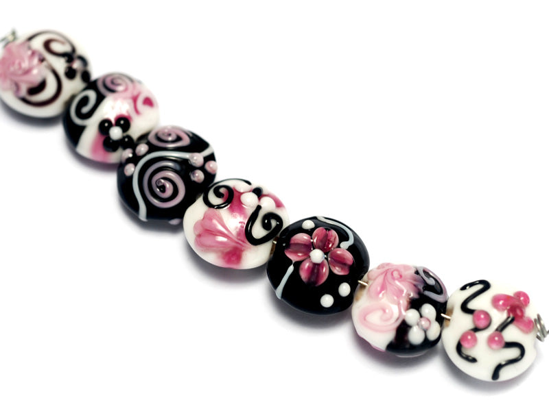 10107102 - Seven Black & White w/Pink Lentil Beads