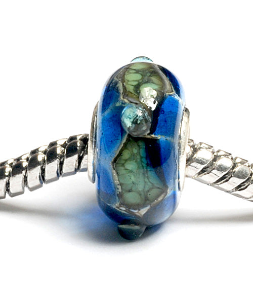 SC10019 - Large Hole Deep Ocean Blue w/Silver Foil Rondelle Bead